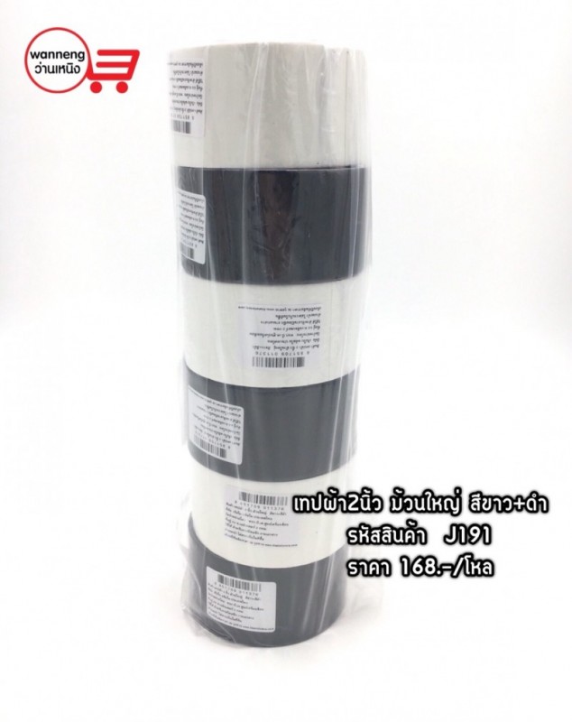 J191 เทปผ้า2นิ้ว ม้วนใหญ่ สีขาว + สีดำ 1 โหล