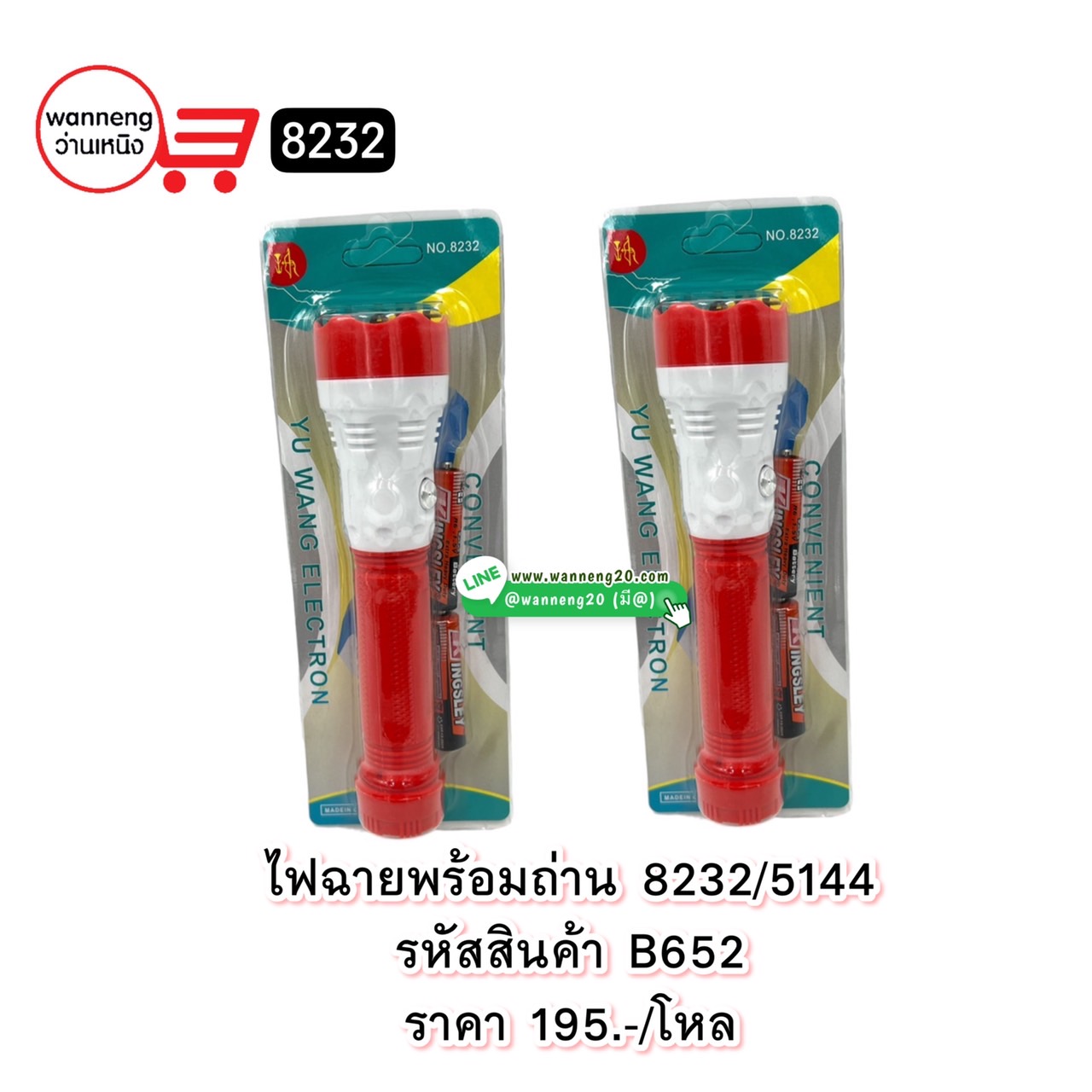 B652 ไฟฉายพร้อมถ่าน 8232 1 โหล