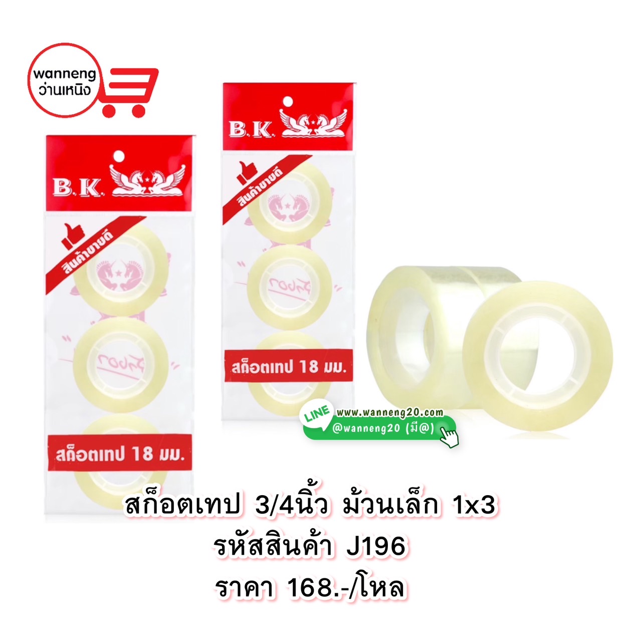 J196 สก็อตเทป3/4นิ้ว ม้วนเล็ก 1 โหล