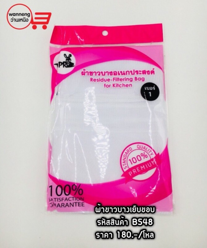 B548 ผ้าขาวบางเย็บขอบ 1 โหล