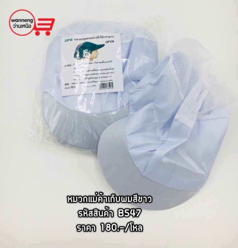 B547 หมวกแม่ค้าเก็บผมสีขาว 1 โหล