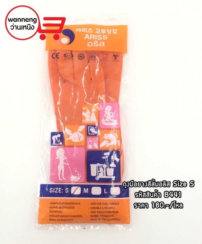 B441 ถุงมือยางสีส้ม Size S 1 โหล