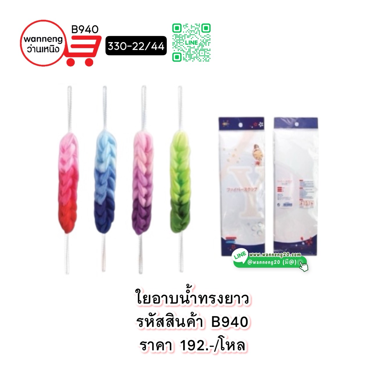 B940 ใยอาบน้ำทรงยาว 330-22/44 1 โหล