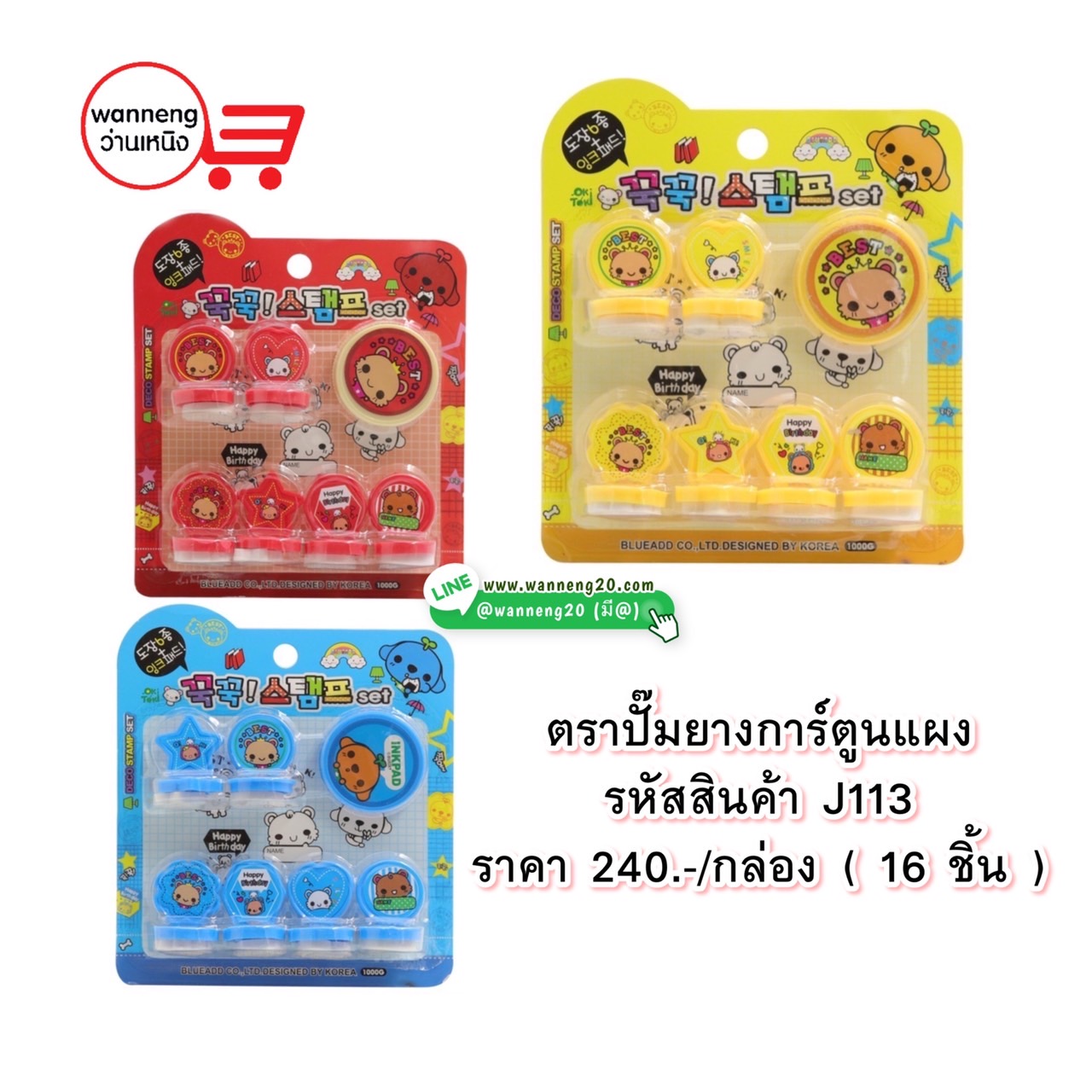 J113 ตราปั๊มยางการ์ตูนแผง 1กล่อง บรรจุ 16 ชิ้น