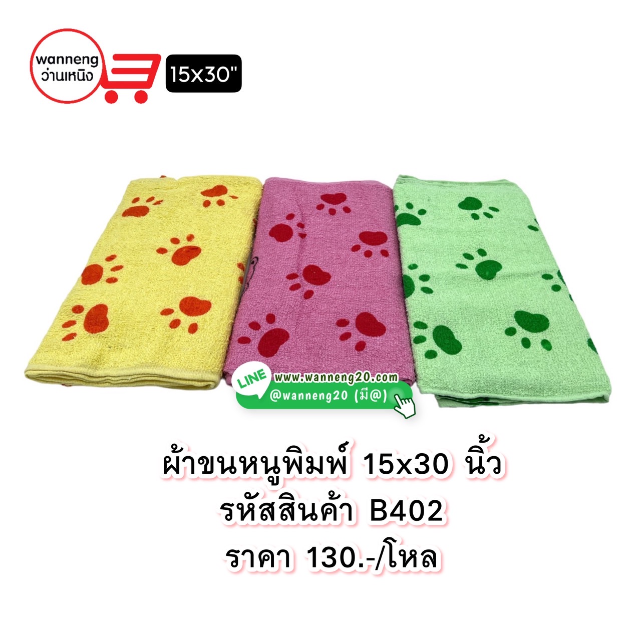 B402 ผ้าขนหนูพิมพ์ลาย 15x30นิ้ว 1 โหล