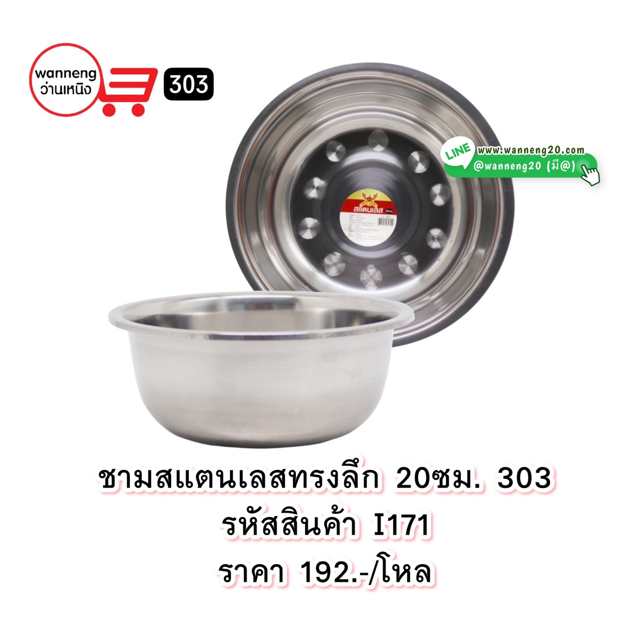 I171 303 ชามสแตนเลสทรงลึก 20 ซม. 1 โหล