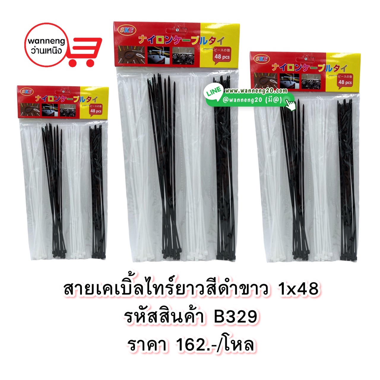 B329 สายเคเบิ้ลไทด์ยาวสีดำ 1x48 1 โหล