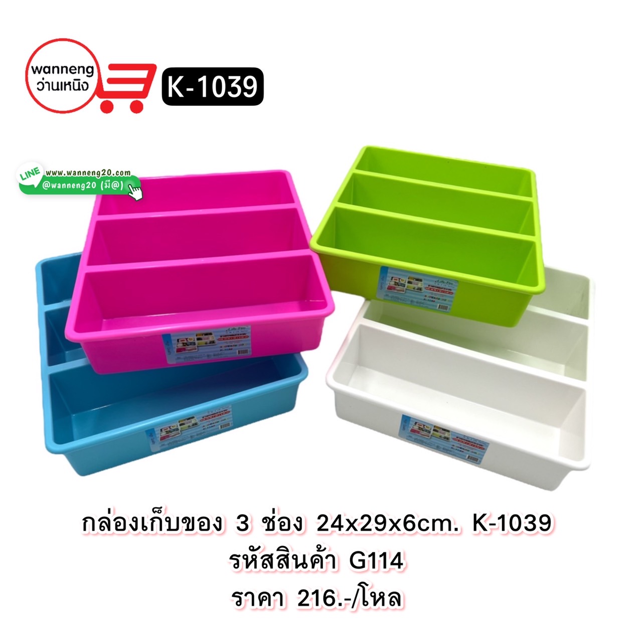 G114 กล่องเก็บของ3ช่อง K-1039 1 โหล