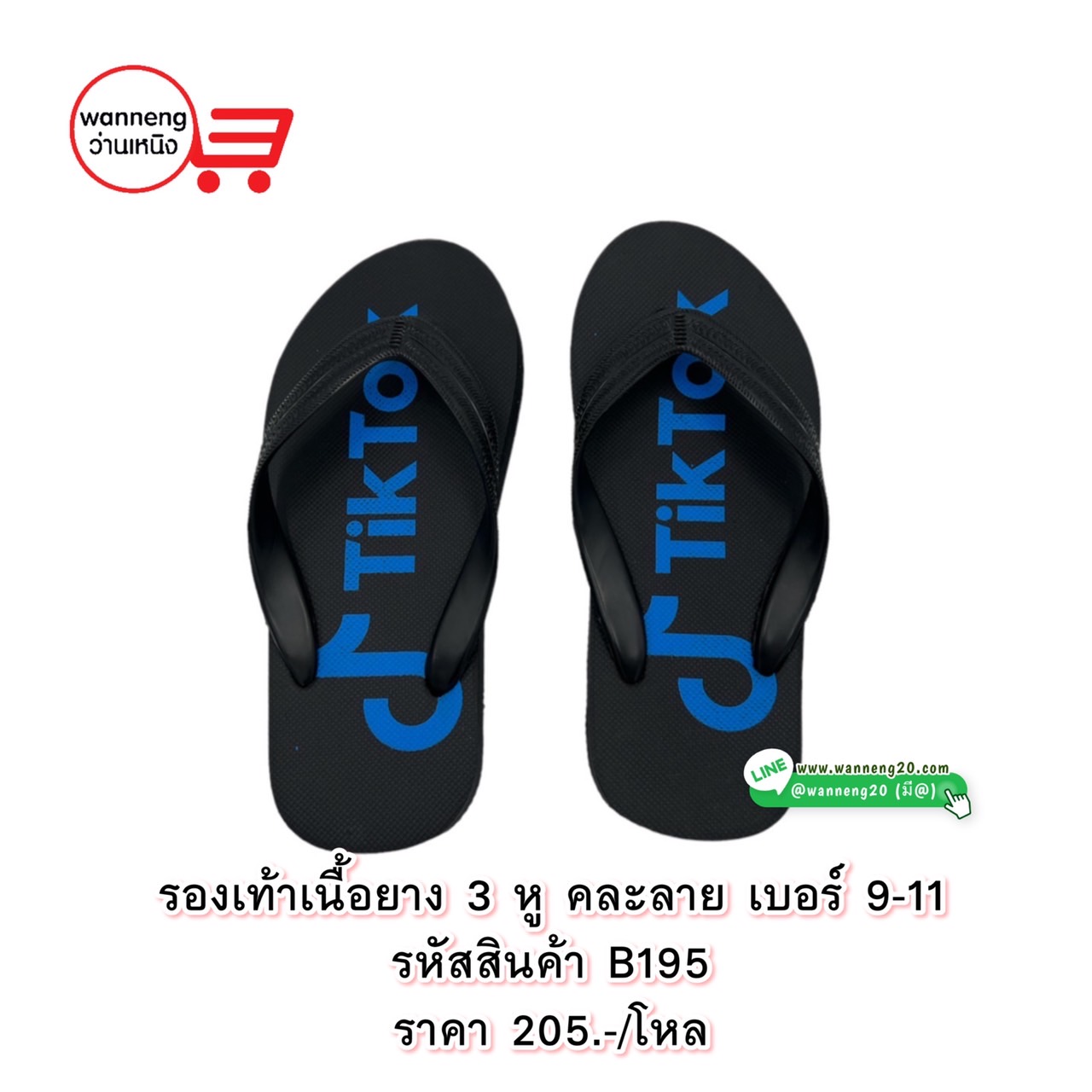 B195 รองเท้าเนื้อยาง 3 หู คละสี เบอร์9-11 1 โหล
