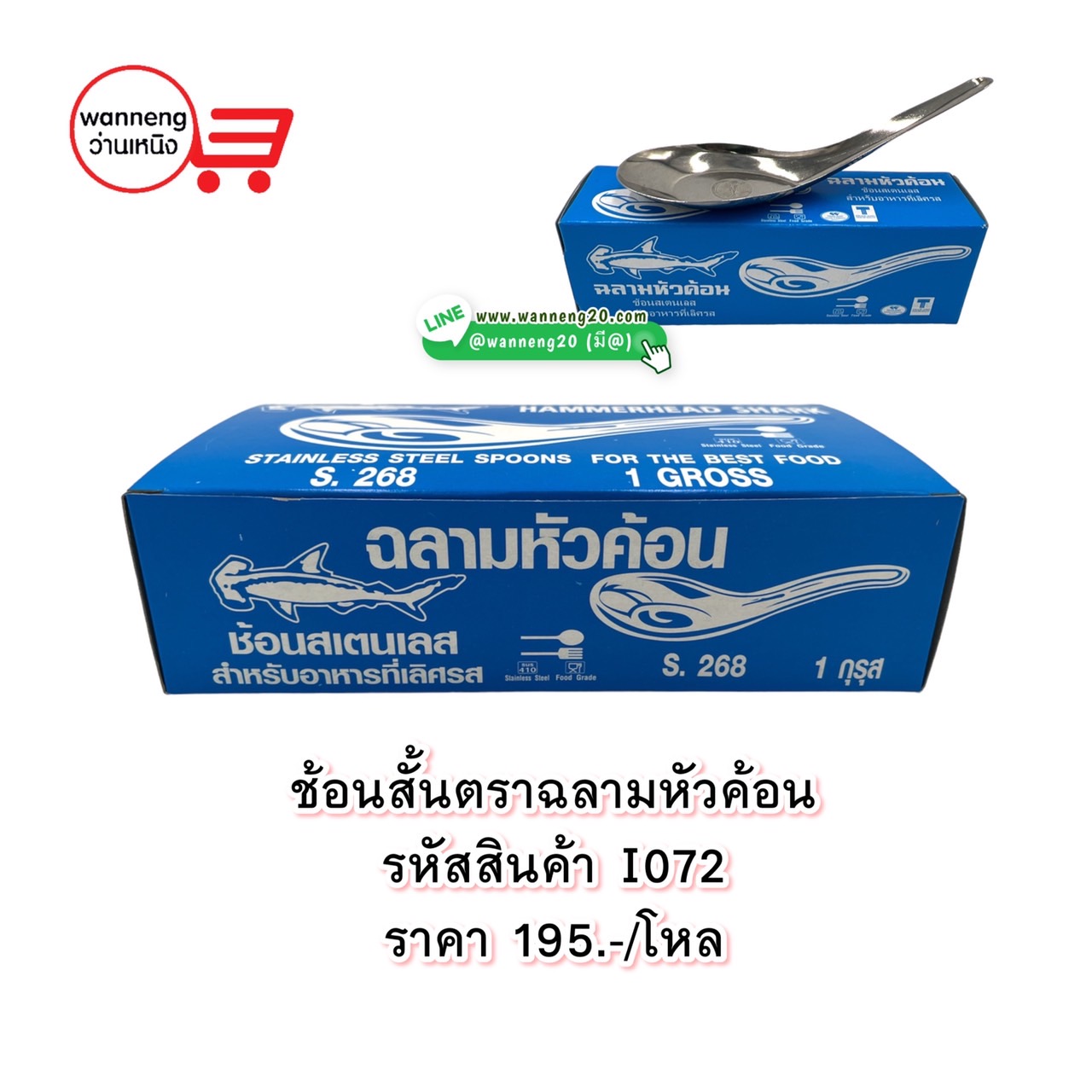I072 ช้อนสั้น ตราฉลามหัวค้อน 1 โหล
