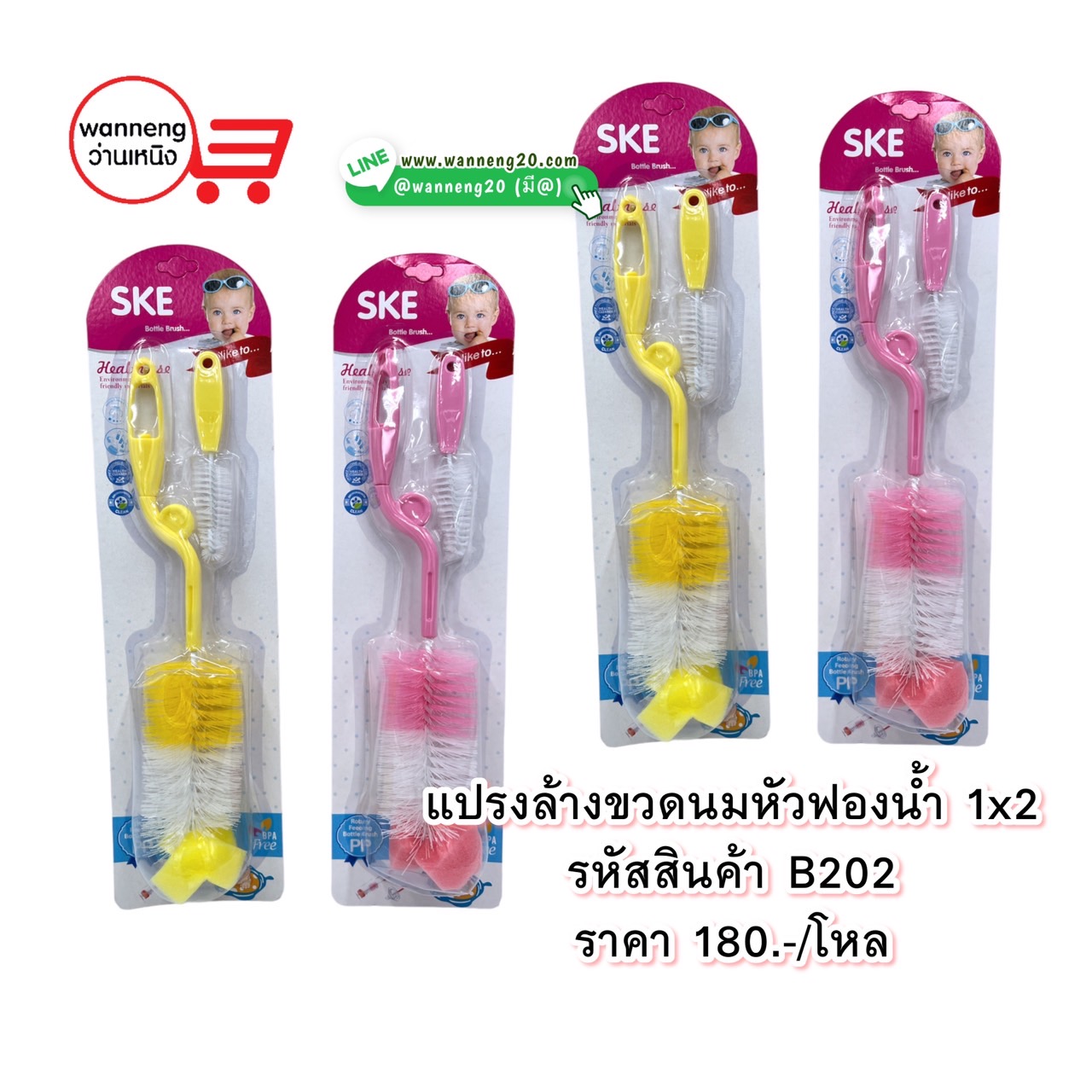 B202 แปรงล้างขวดนม 1x2 1 โหล