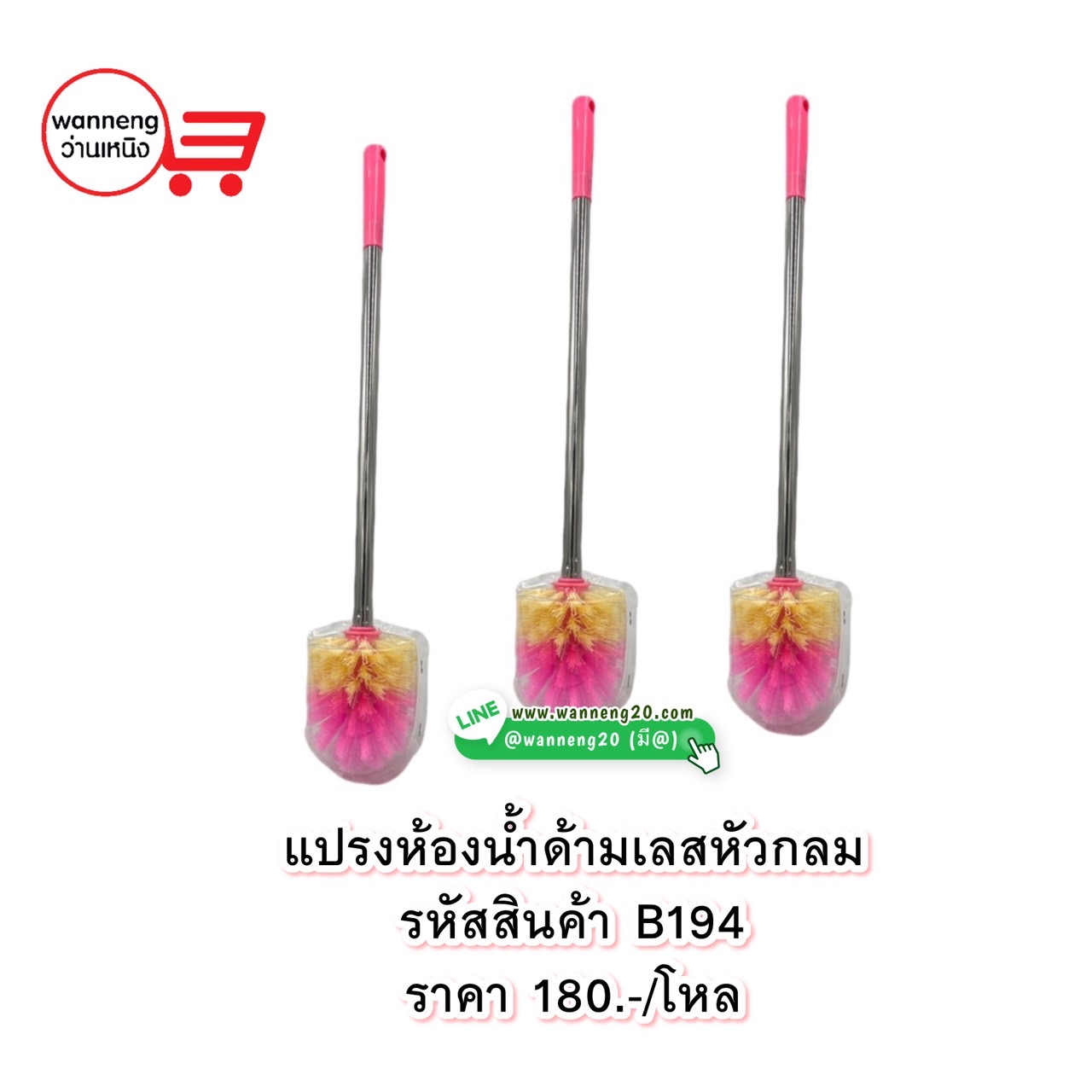 B194 แปรงห้องน้ำด้ามเลสหัวกลม 1 โหล