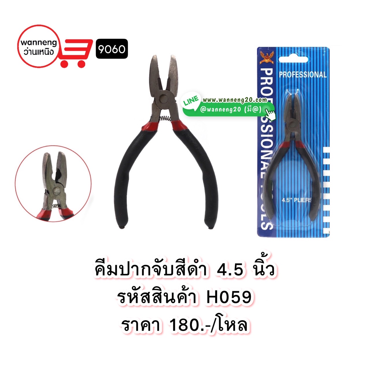 H059 คีมปากจับสีดำ 4.5 นิ้ว 9060 1 โหล