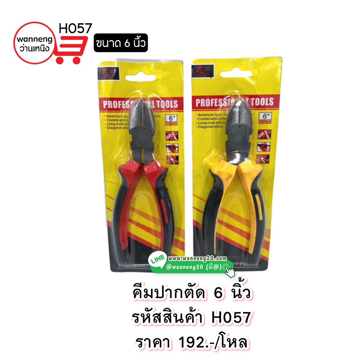 H057 คีมปากตัด 6 นิ้ว 1 โหล