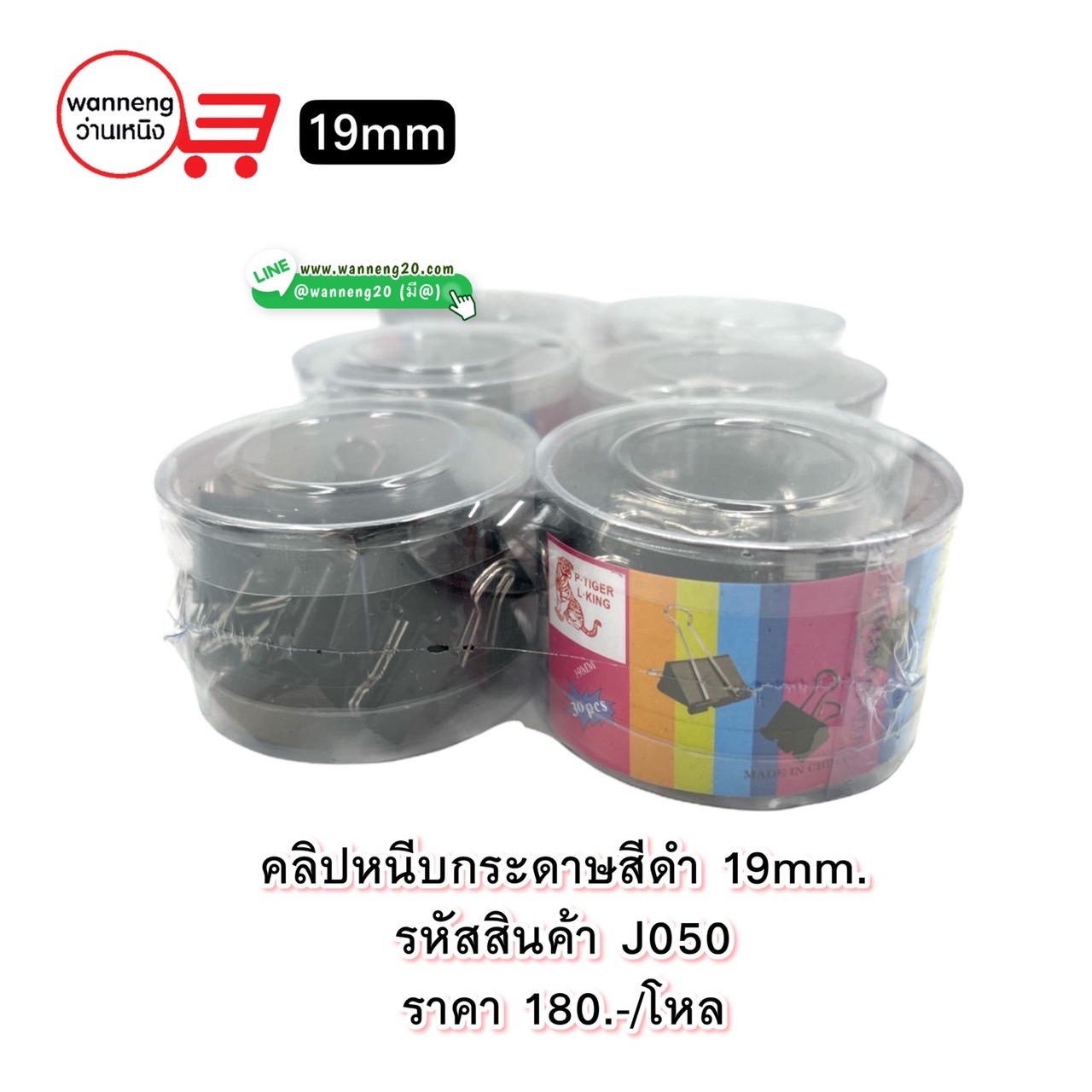 J050 คลิปหนีบกระดาษสีดำ 19mm. 1โหล