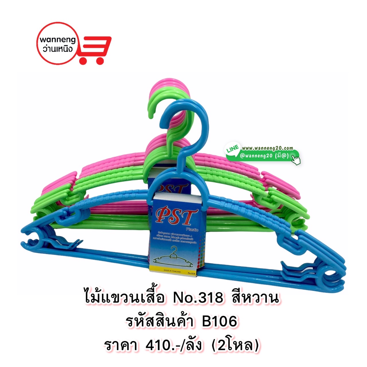 B106 ไม้แขวนเสื้อ No. 318 สีหวาน 1ลัง 24 แพค