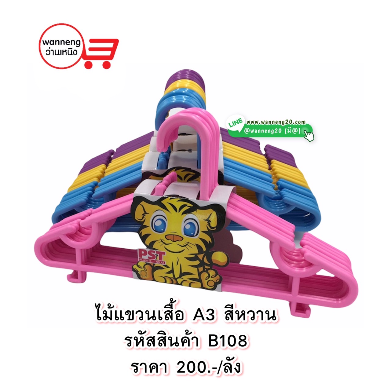 B108 ไม้แขวนเสื้อเด็ก A3 สีหวาน 1 ลัง