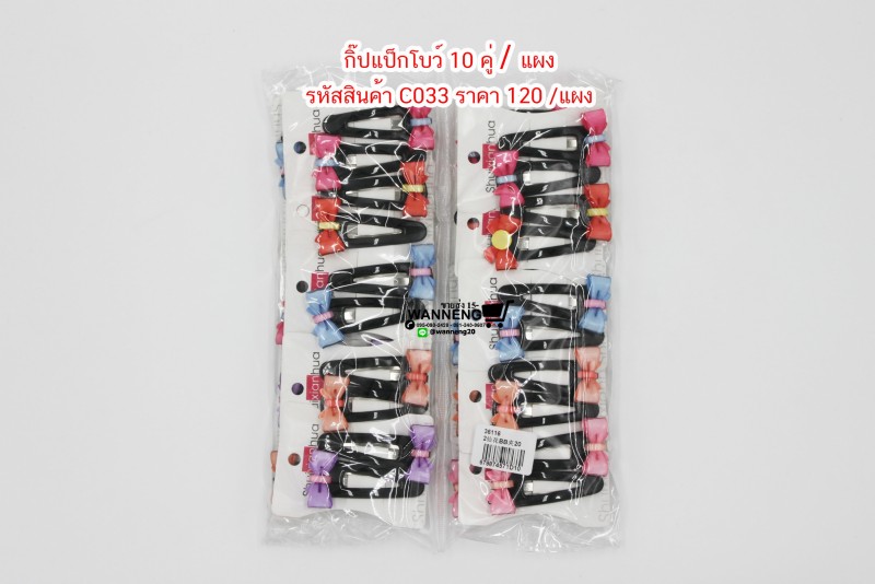 C033 กิ๊ปแป๊กโบว์(10คู่) / แผง
