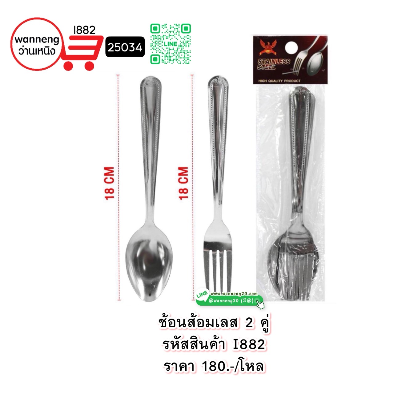 I882 ช้อนส้อมเลส 2 คู่ 25034 1 โหล
