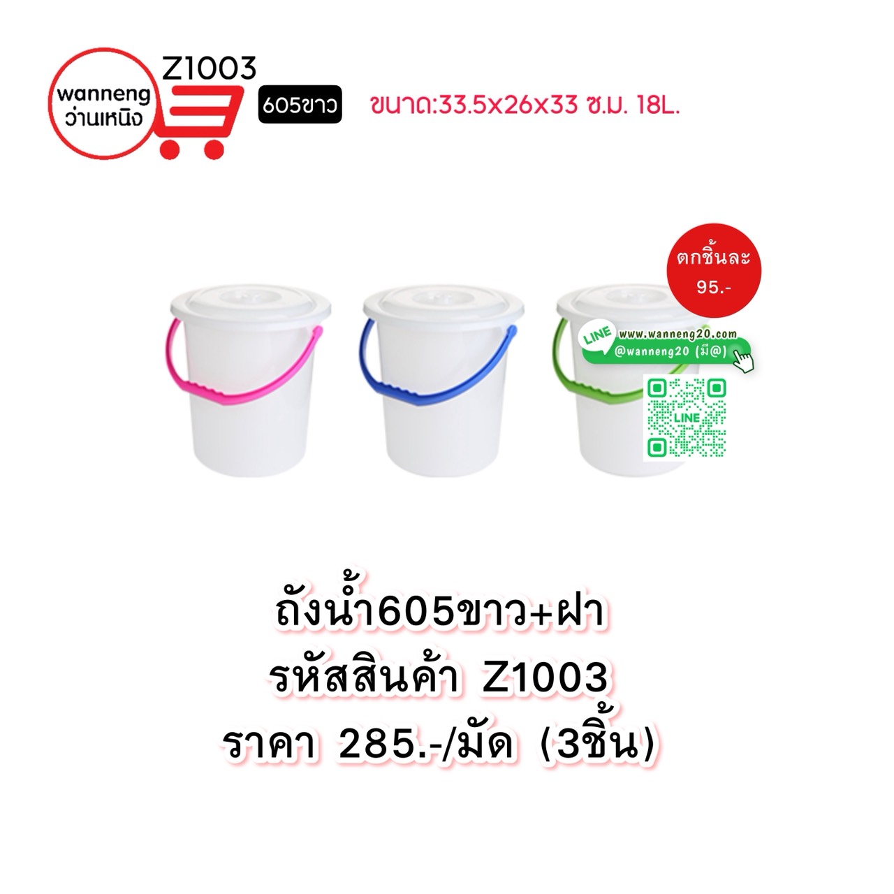 Z1003 ถังน้ำ 605 ขาว+ฝา 1 มัด 3 ชิ้น