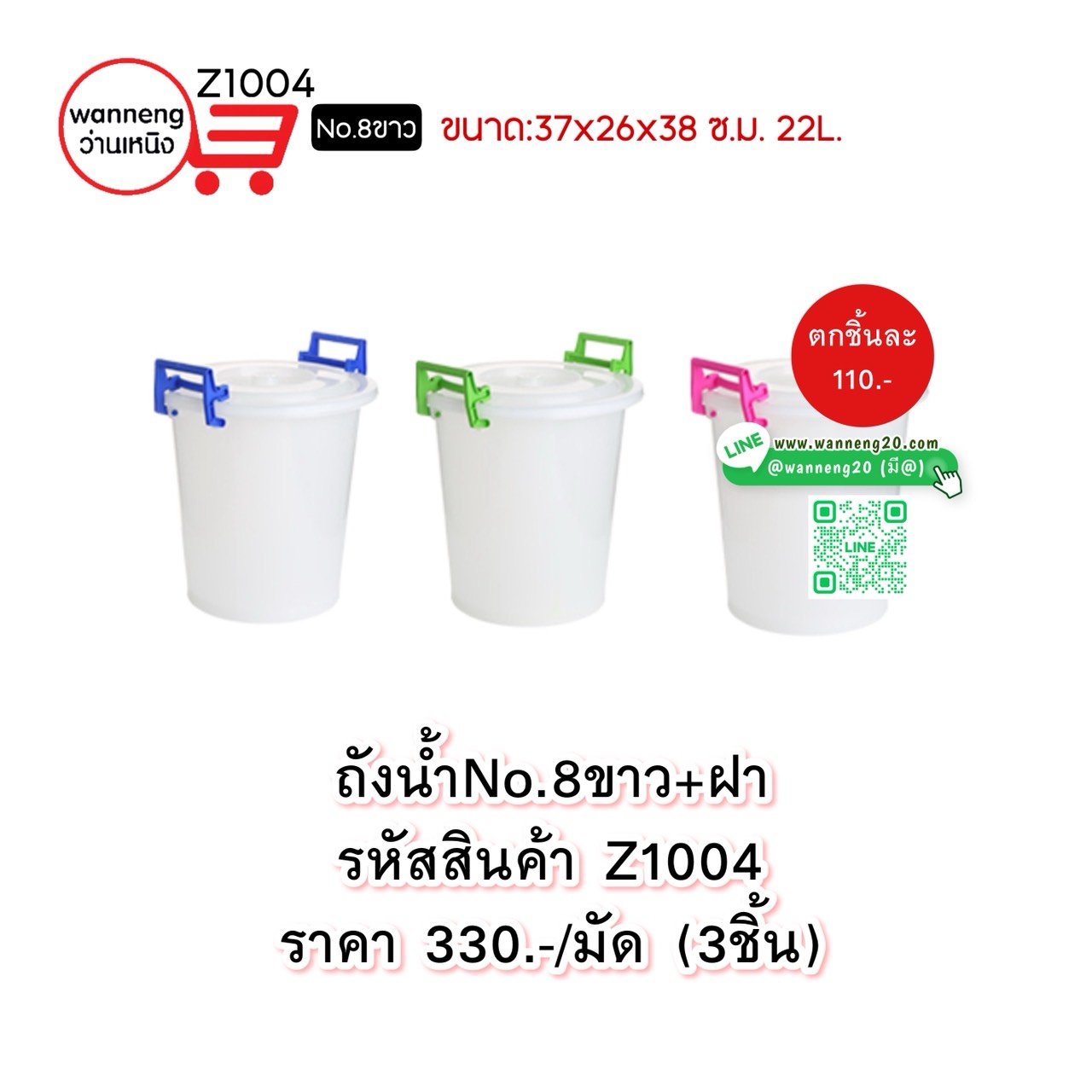 Z1004 ถังน้ำ No.8 ขาว+ฝา 1 มัด 3 ชิ้น