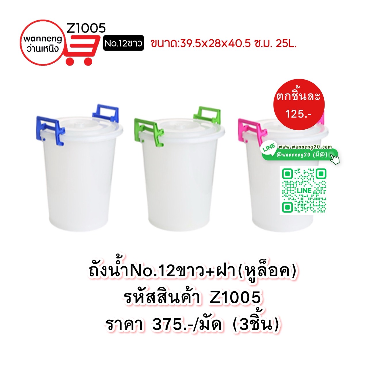 Z1005 ถังน้ำ No.12 ขาว+ฝา (หูล็อค) 1 มัด 3 ชิ้น