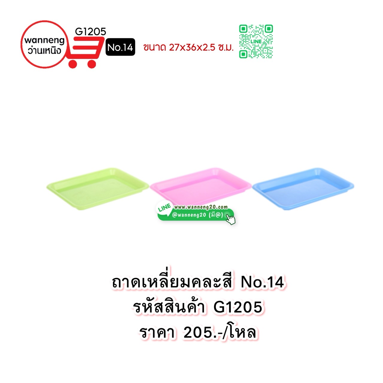 G1205 ถาดเหลี่ยมคละสี No.14 1 โหล