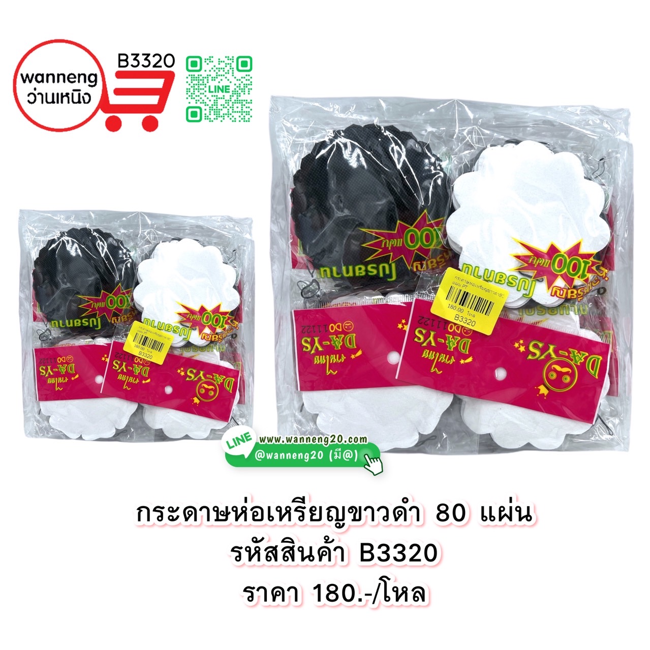 B3320 กระดาษห่อเหรียญขาวดำ 80 แผ่น 1 โหล