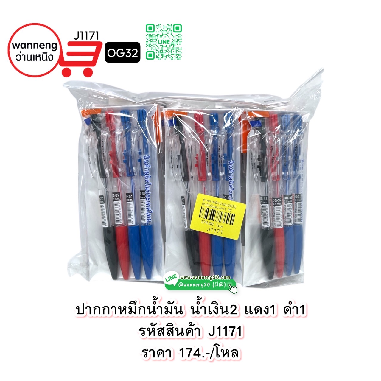 J1171 ปากกาหมึกน้ำมัน OG32 น้ำเงิน 2 แดง 1 ดำ 1 1 โหล
