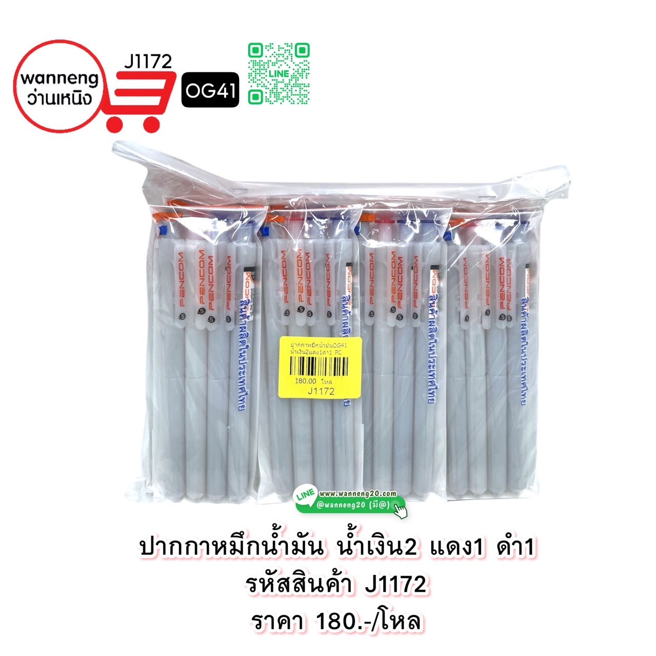 J1172 ปากกาหมึกน้ำมัน OG41 น้ำเงิน 2 แดง 1 ดำ 1 1 โหล