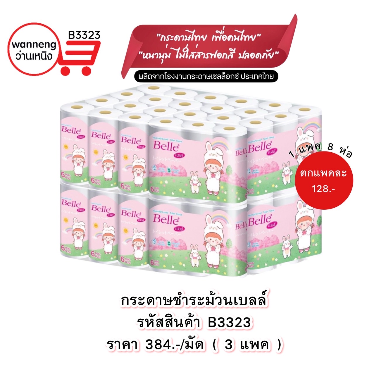 B3323 กระดาษชำระม้วนเบลล์ 1 มัด 3 แพค ( 1 แพค 8 ห่อ )