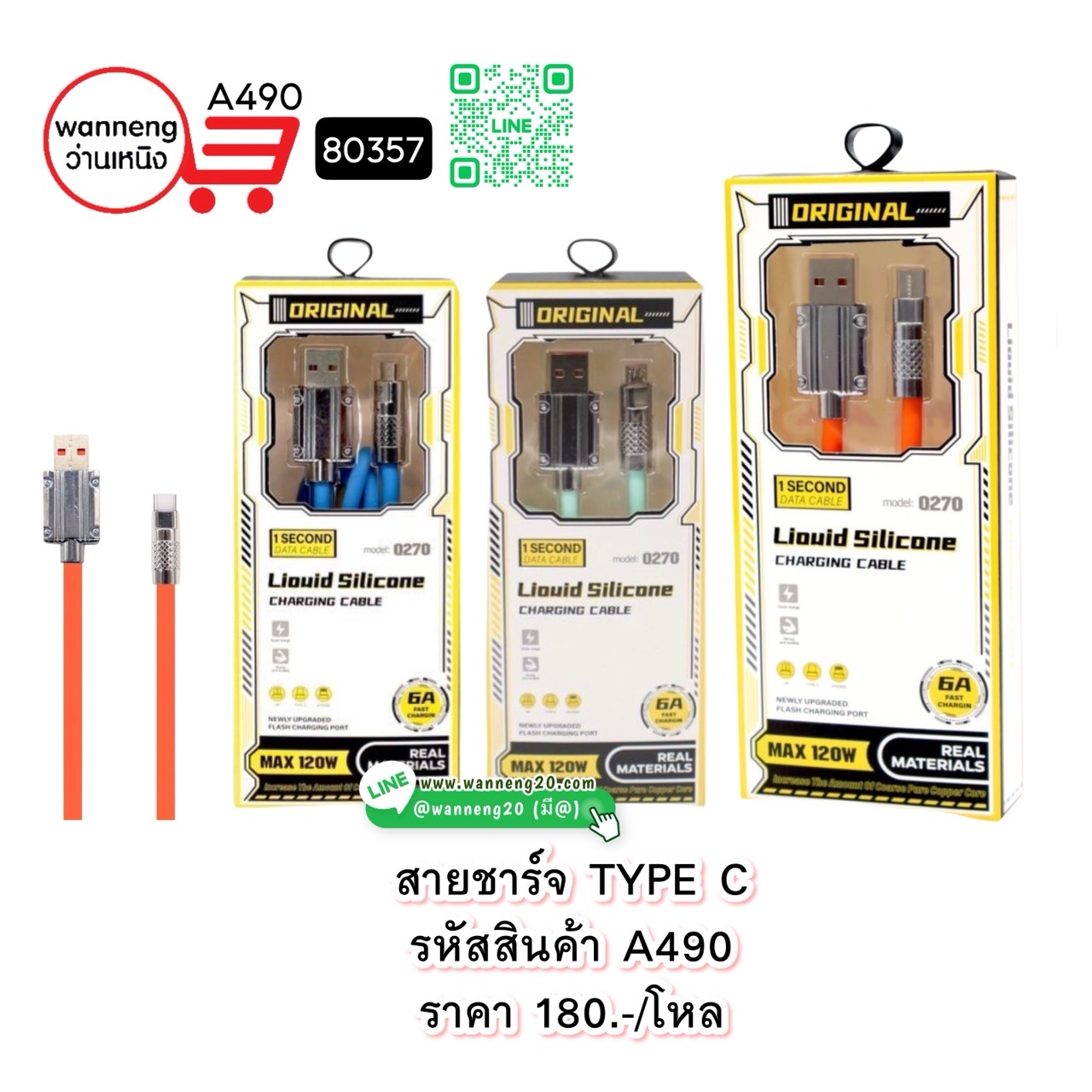 A490 สายชาร์จ Type-C 80357 1 โหล