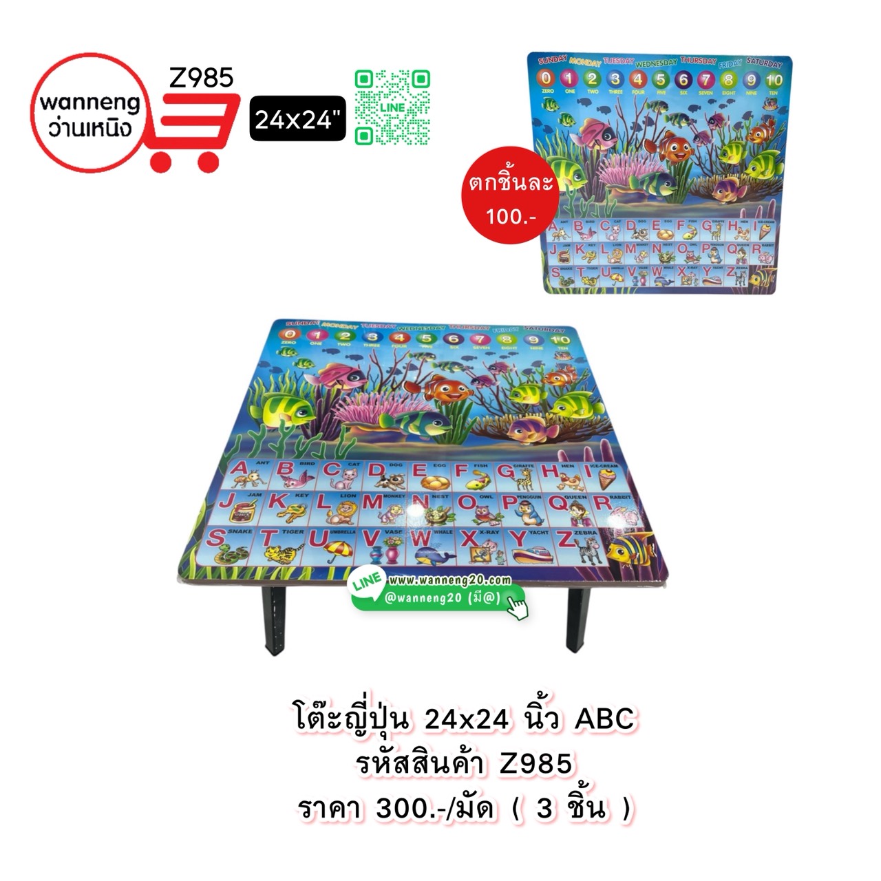 Z985 โต๊ะญี่ปุ่น 24x24 นิ้ว ABC 1 มัด 3 ชิ้น