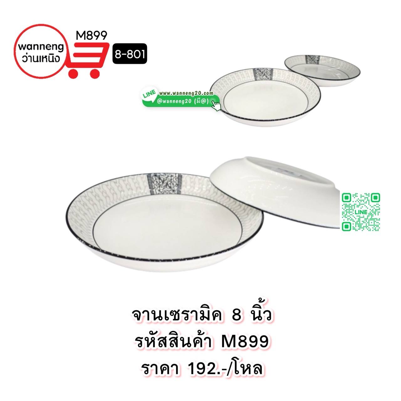 M899 จานเซรามิค 8 นิ้ว 8-801 1 โหล