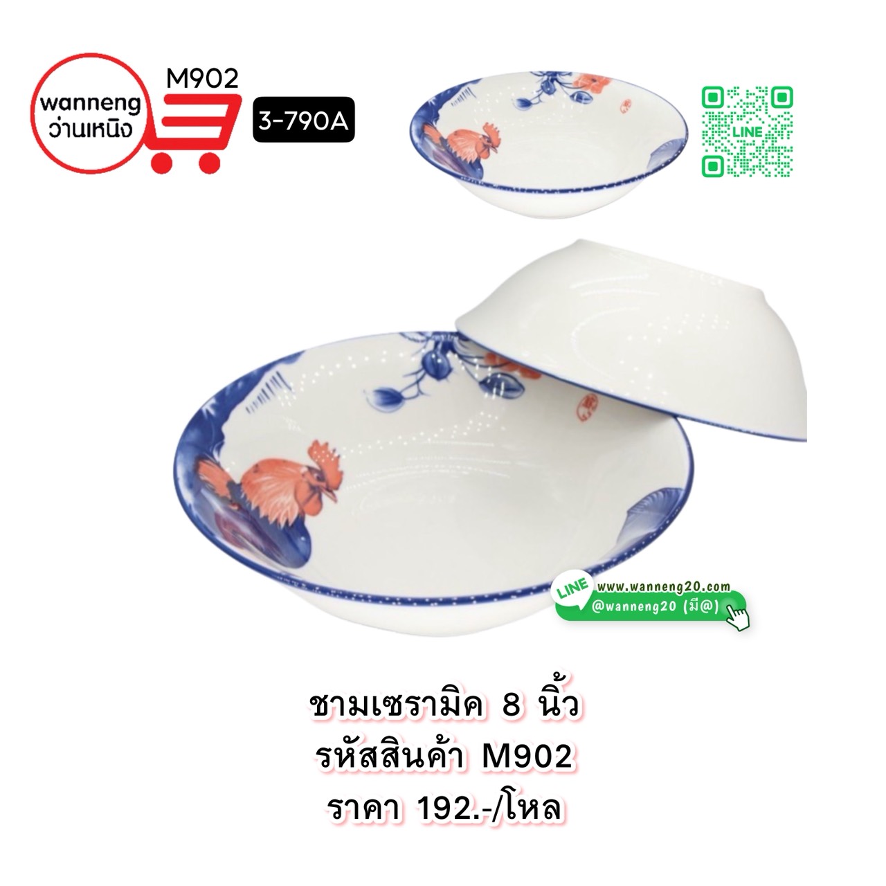 M902 ชามเซรามิค 8 นิ้ว 3-790A 1 โหล