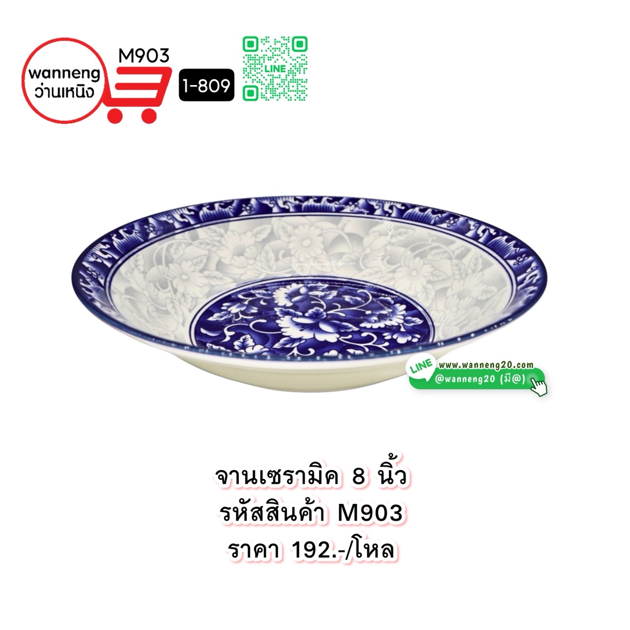 M903 จานเซรามิค 8 นิ้ว 1-809 1 โหล