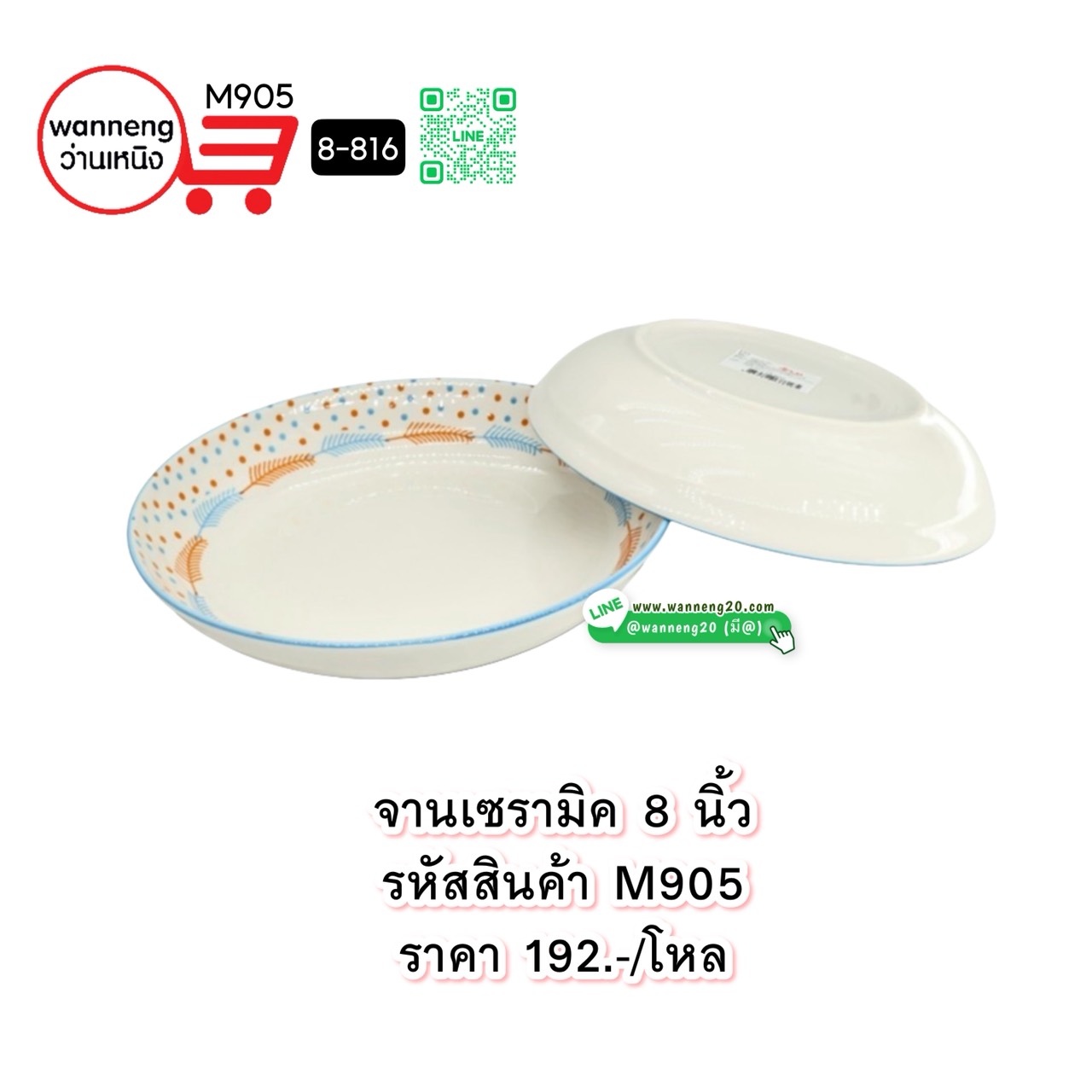 M905 จานเซรามิค 8 นิ้ว 8-816 1 โหล