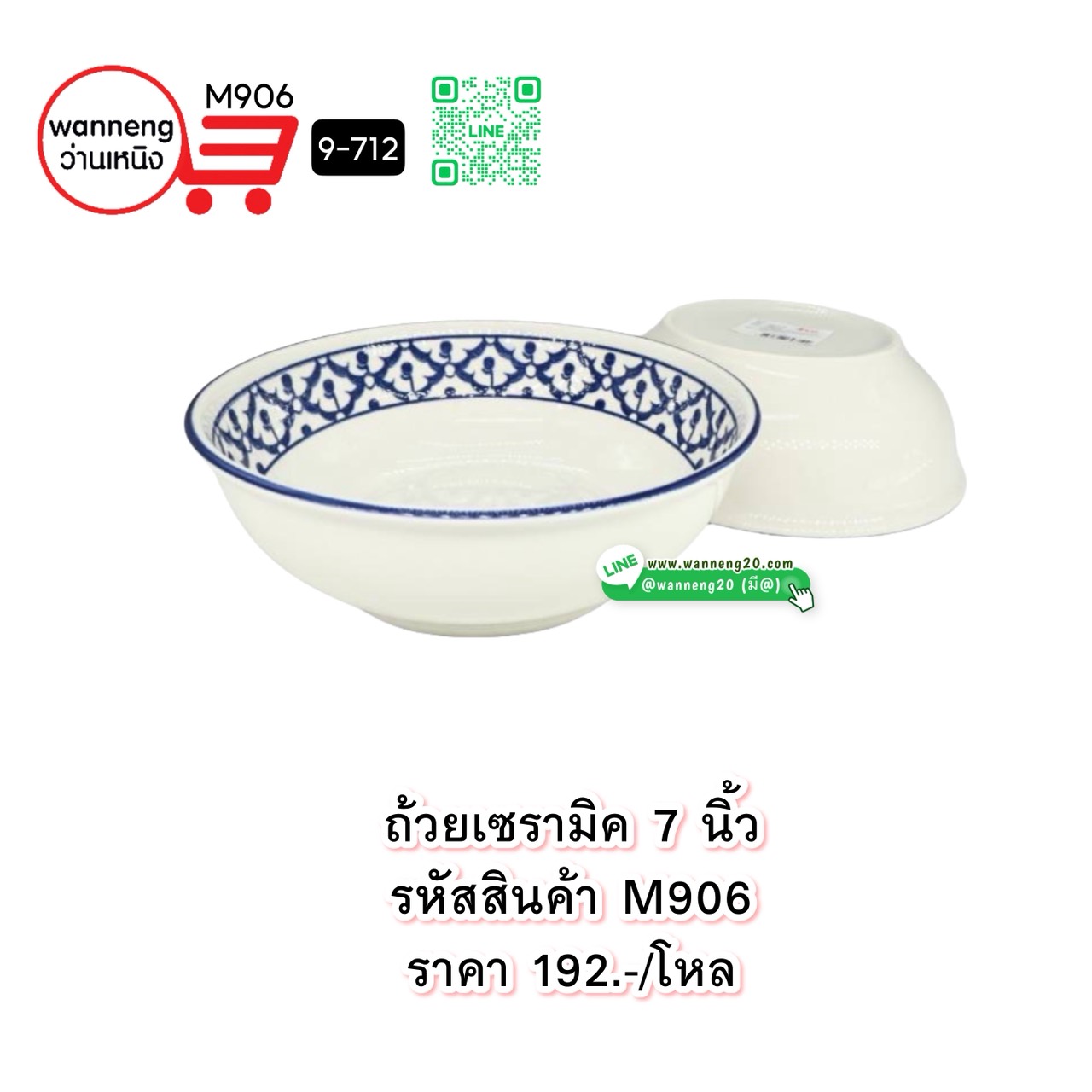 M906 ถ้วยเซรามิค 7 นิ้ว 9-712 1 โหล