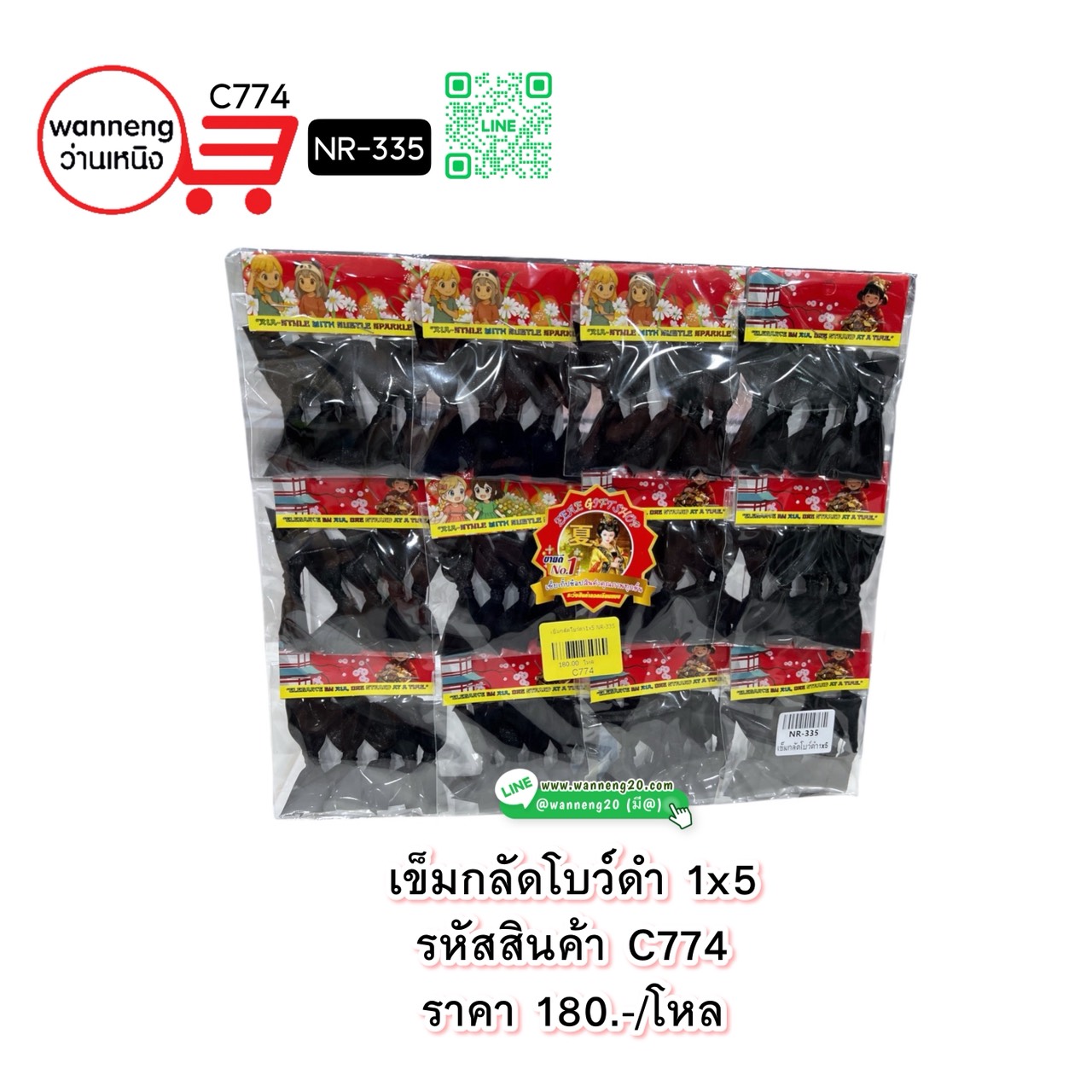 C774 เข็มกลัดโบว์ดำ 1x5 NR-335 1 โหล