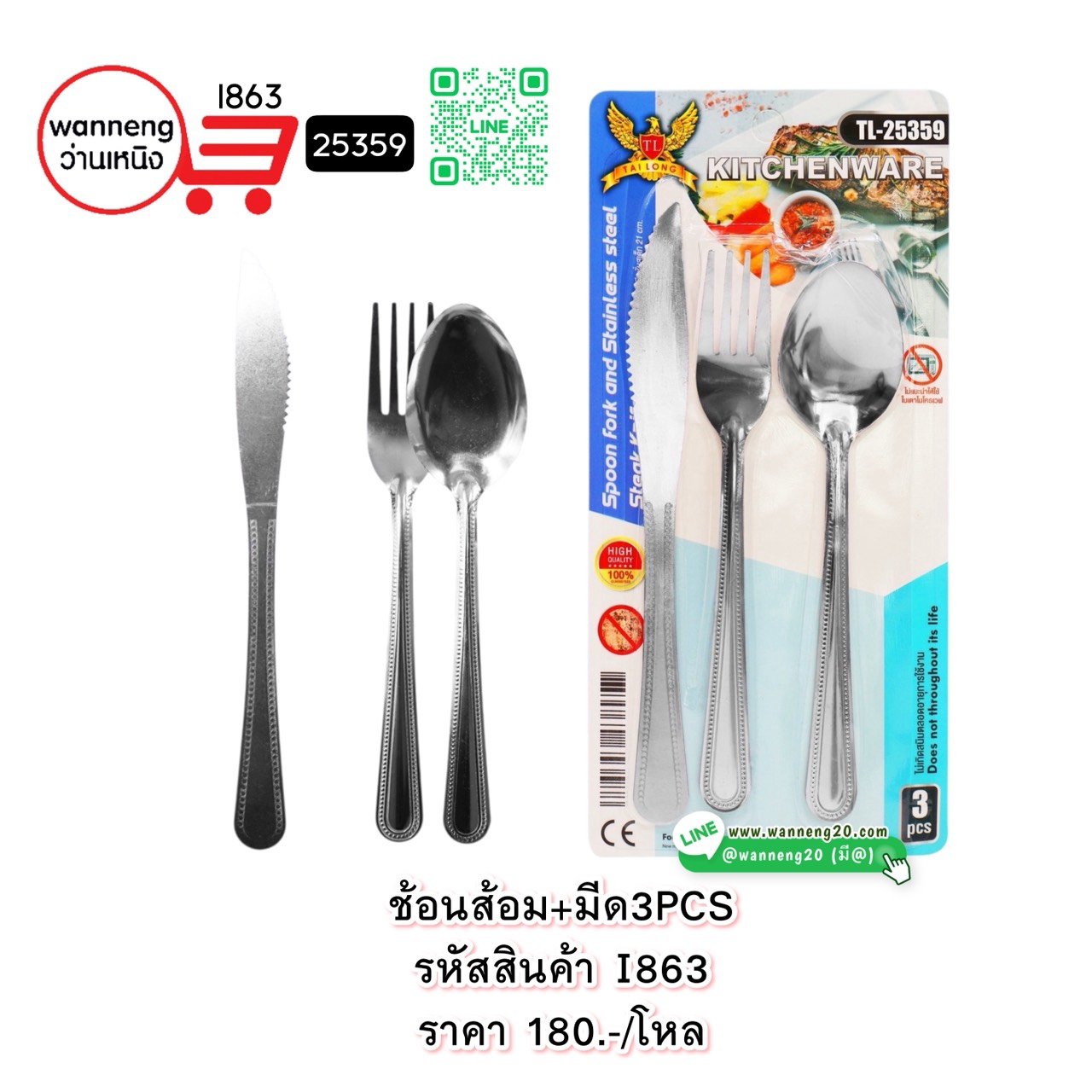 I863 ช้อนส้อม+มีด3PCS 25359 1 โหล