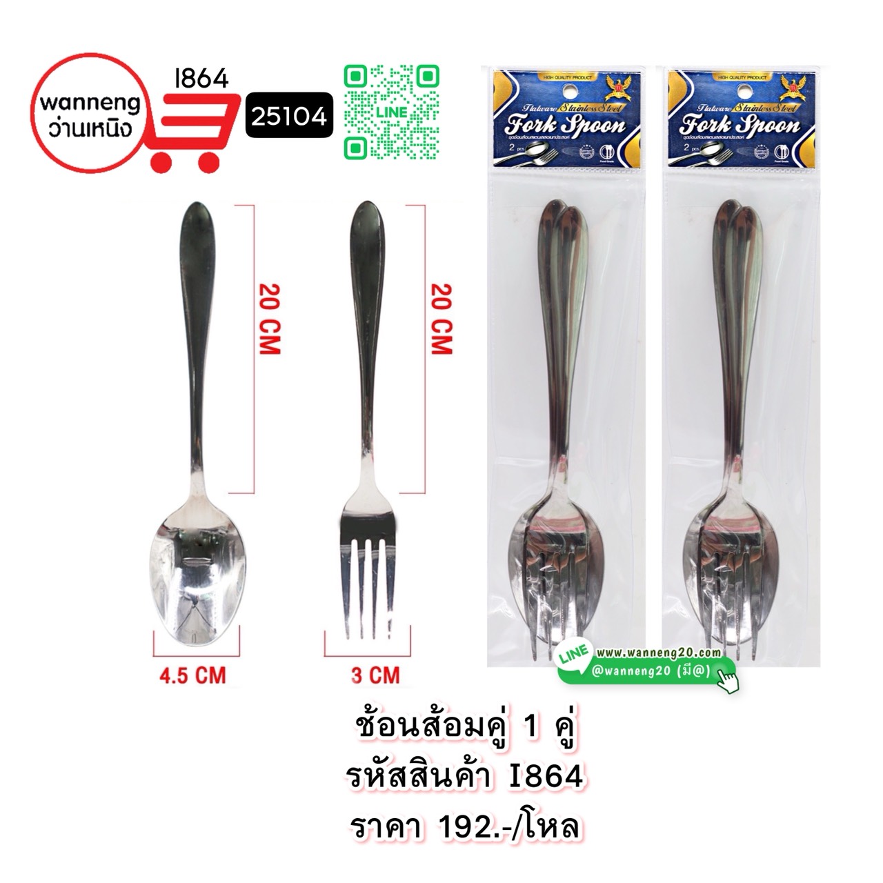 I864 ช้อนส้อม 1 คู่ 25104 1 โหล