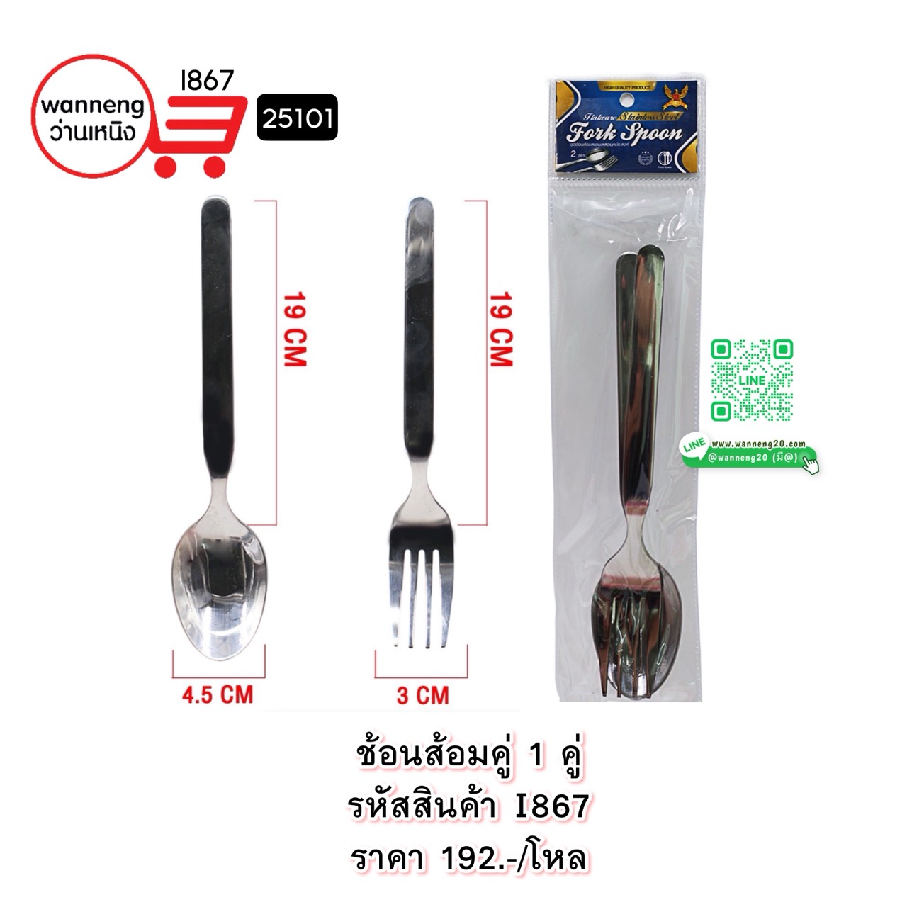 I867 ช้อนส้อม 1 คู่ 25101 1 โหล