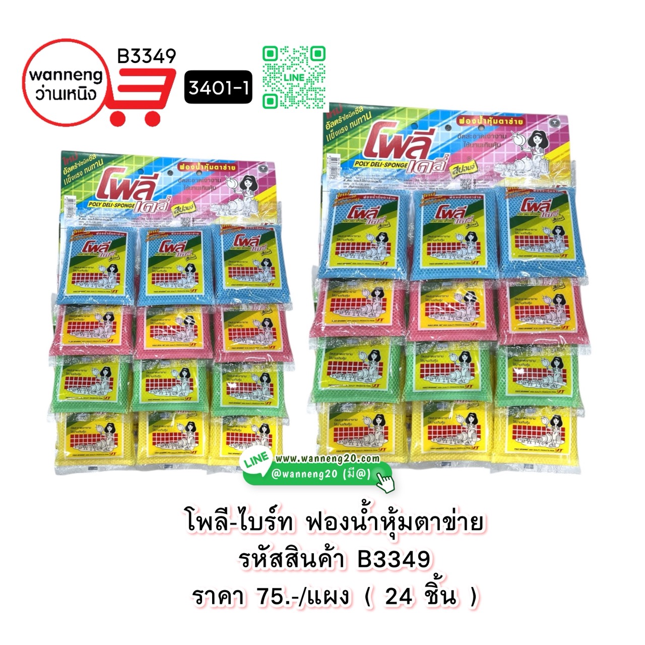 B3349 โพลี-ไบร์ท ฟองน้ำหุ้มตาข่าย 3401-1 24 ชิ้น 1 แผง