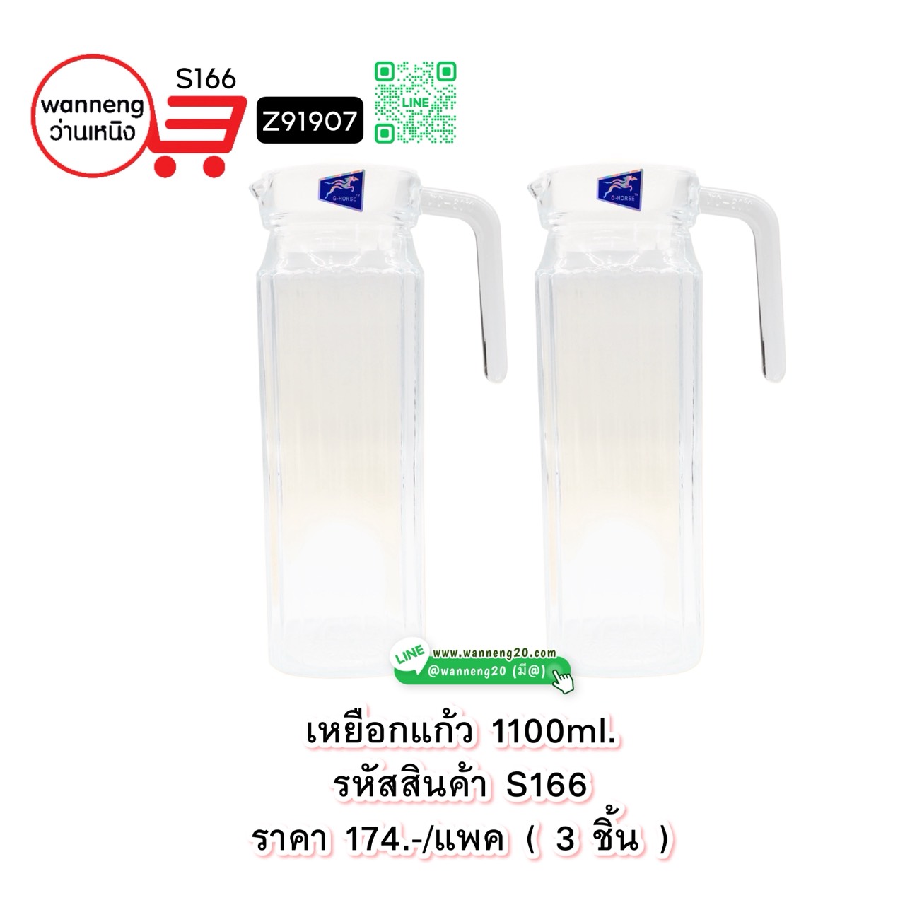 S166 เหยือกแก้ว 1100ml. Z91907 1 แพค 3 ชิ้น