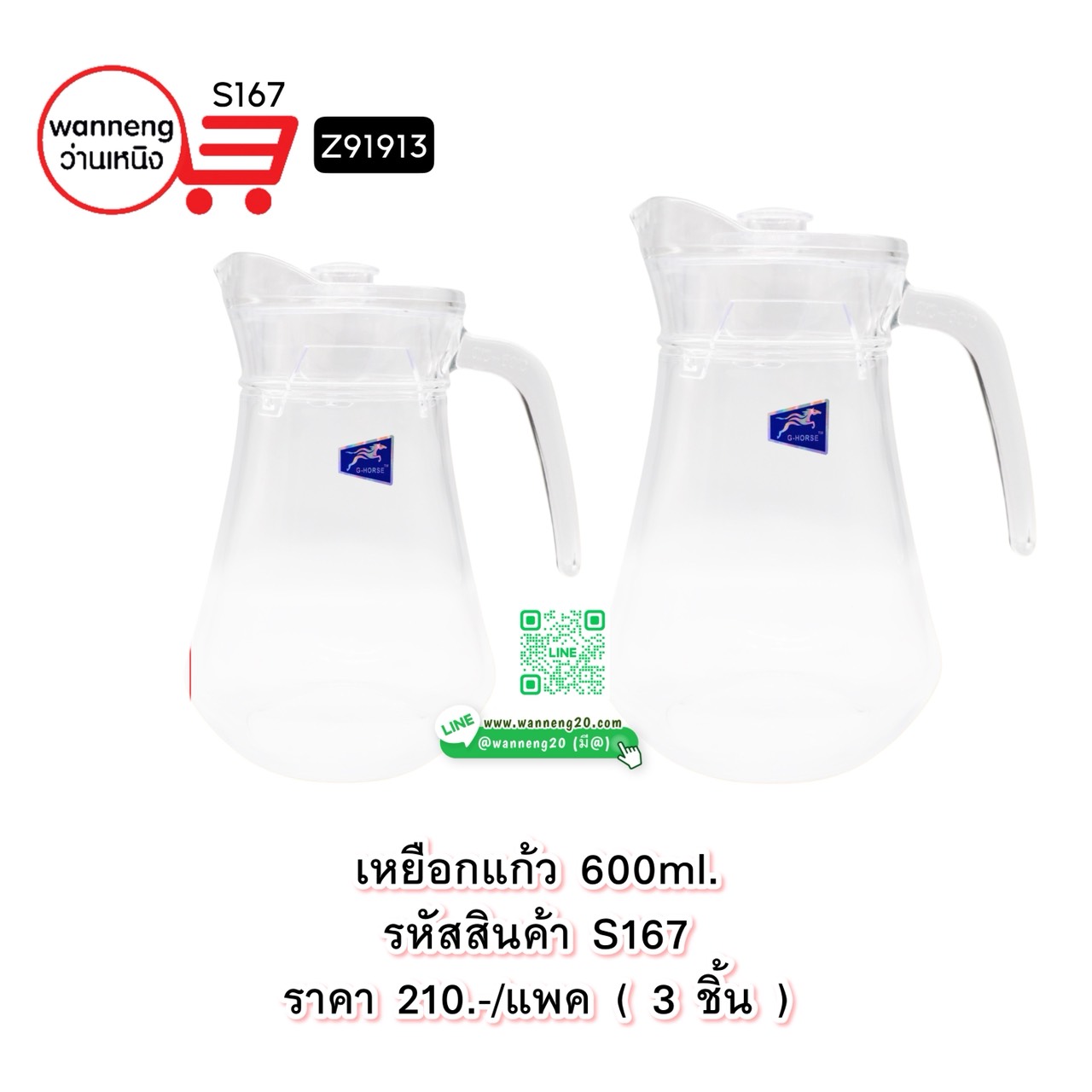 S167 เหยือกแก้ว 600ml. Z91913 1 แพค 3 ชิ้น