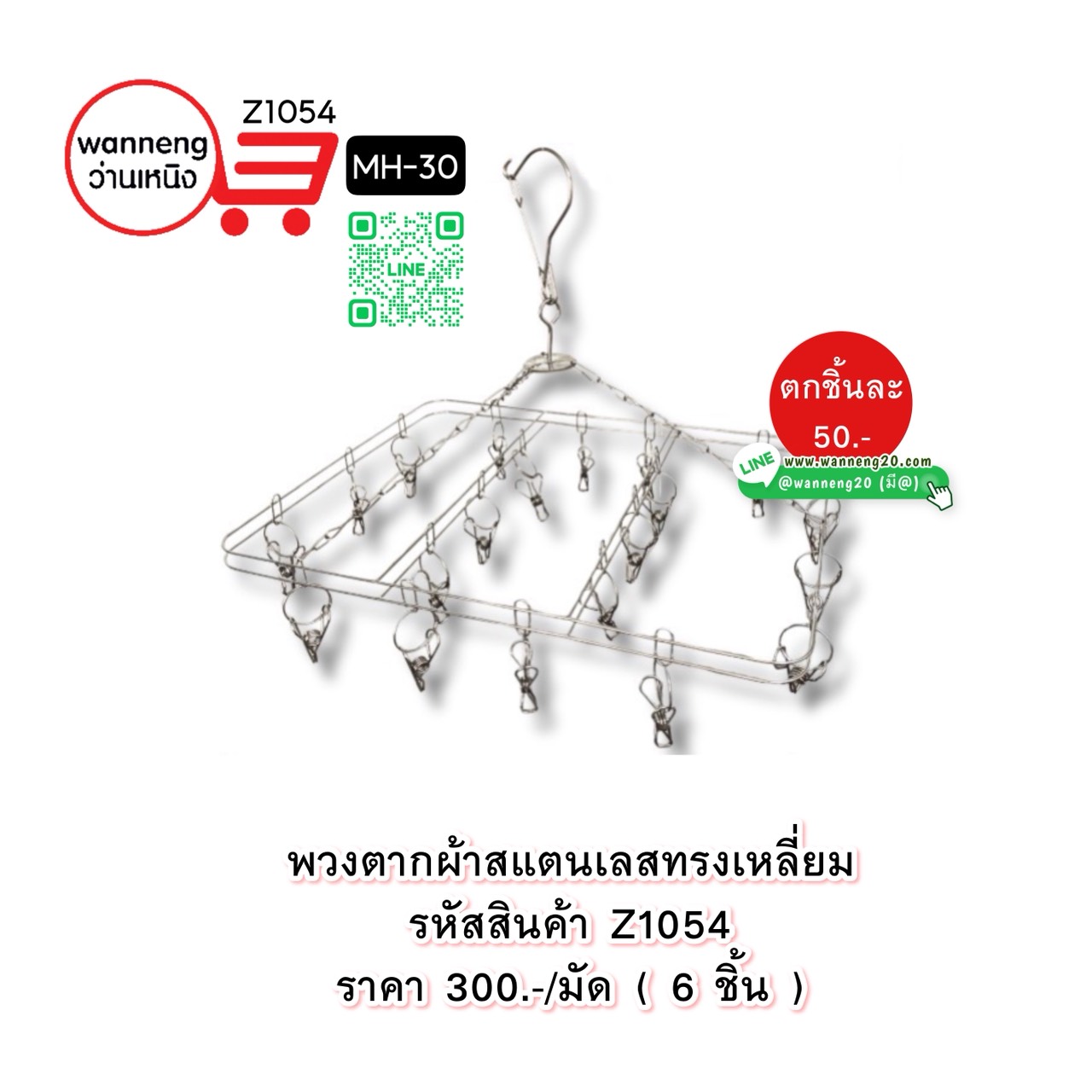 Z1054 พวงตากผ้าสแตนเลสทรงเหลี่ยม MH-30 1 มัด 6 ชิ้น