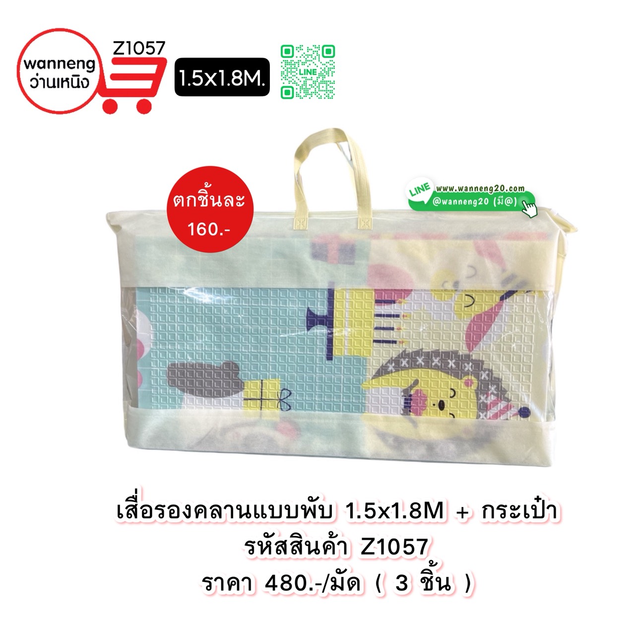 Z1057 เสื่อรองคลานแบบพับ 1.5x1.8M.+กระเป๋า 1 มัด 3 ชิ้น