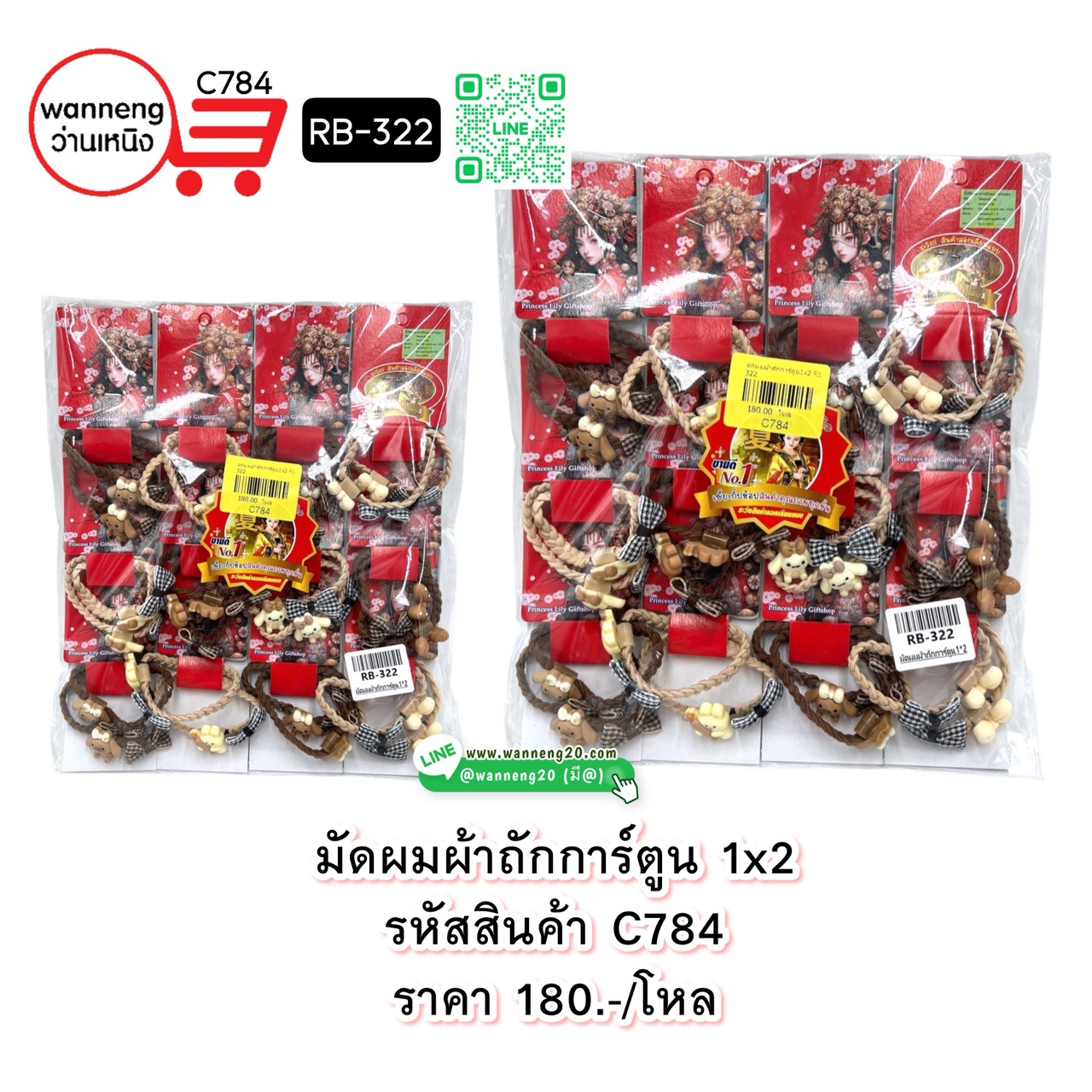 C784 มัดผมผ้าถักการ์ตูน 1x2 RB-322 1 โหล