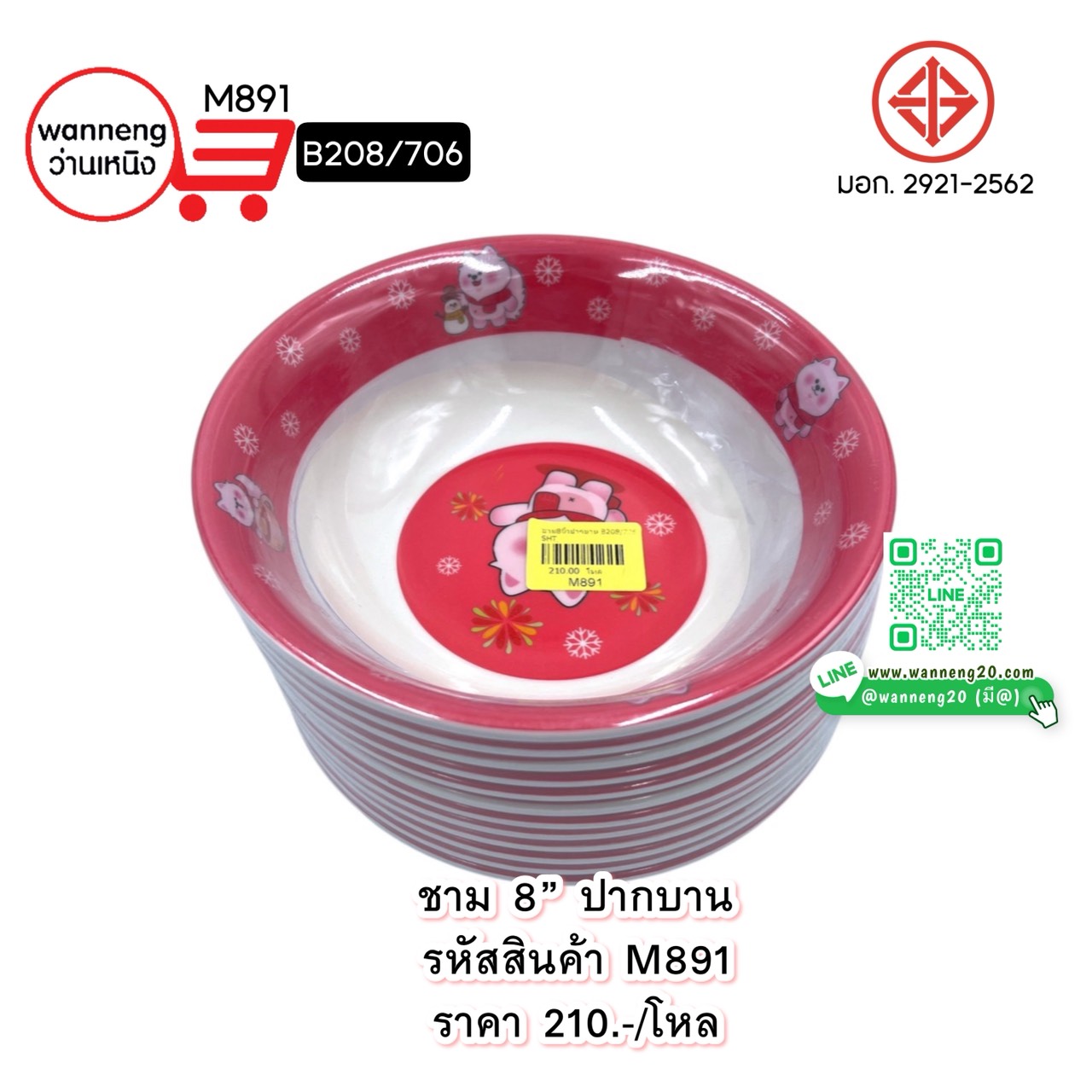 M891 ชาม 8 นิ้ว ปากบาน B208/706 1 โหล