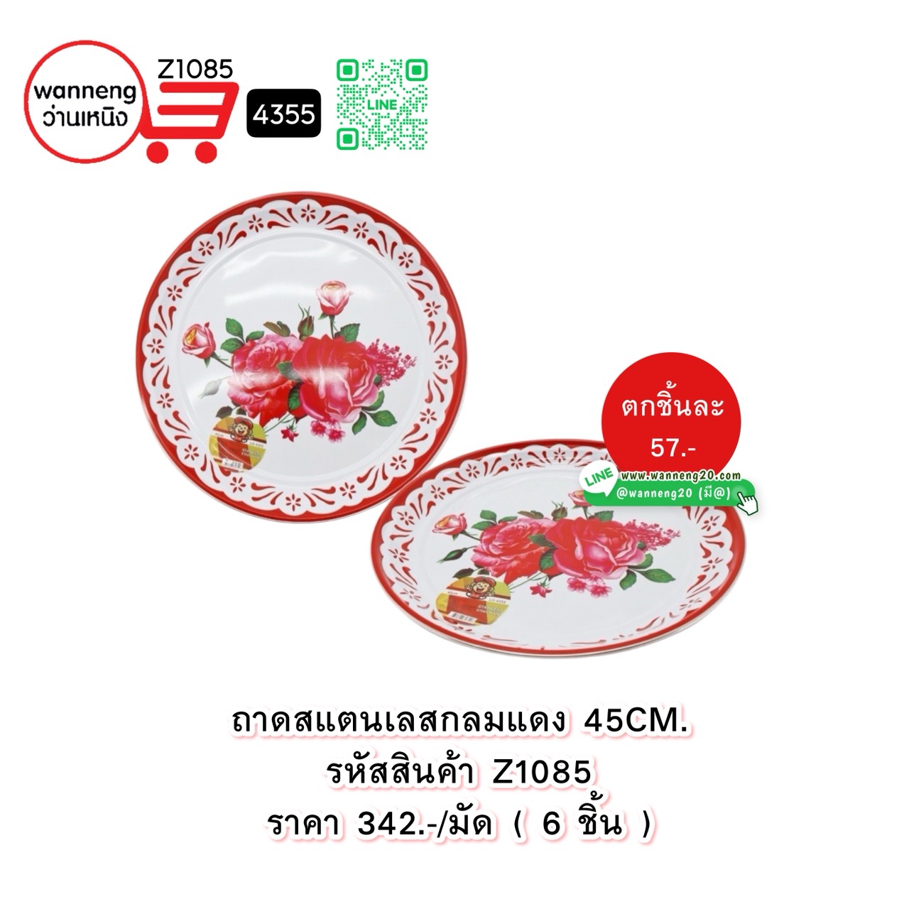 Z1085 ถาดสแตนเลสกลมแดง 45CM. 4355 1 มัด 6 ชิ้น